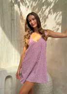 The Mini Gili in Maroon Gingham is the color that makes a simple gingham print feel like a statement.