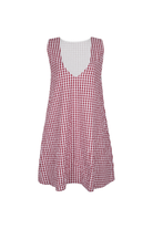 Richer and deeper than classic red, maroon gingham sits in that perfect sweet spot between summer and fall — warm enough to carry through Labor Day, cool enough to feel right on a crisp September evening in Newport or a wine country weekend in October. Made from soft, breathable 100% cotton with a relaxed oversized fit, this is the mini that transitions your wardrobe without you having to think about it.