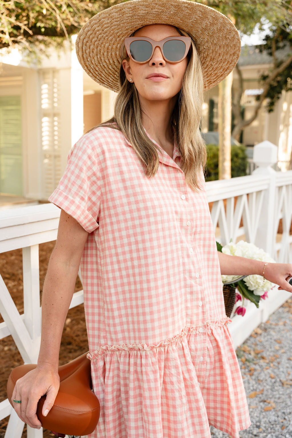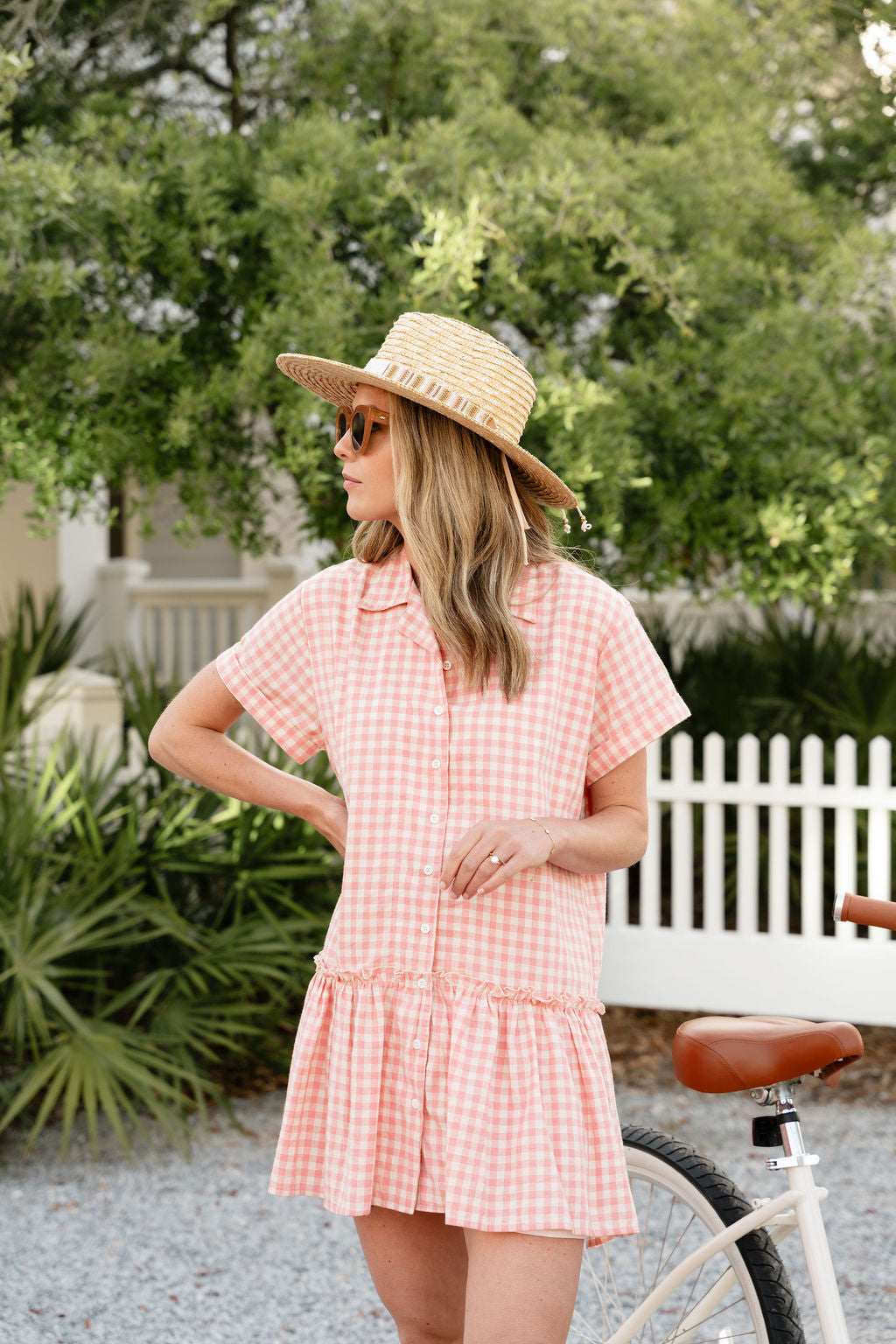 Our fan-favorite Ripley Dress, now in Pink Gingham. Effortlessly chic for a day at the beach or cocktails with friends.