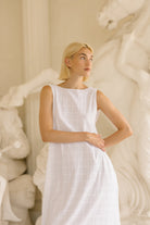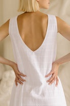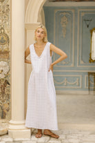 The Gili Dress is a lightweight, reversible maroon gingham maxi made for easy, everyday elegance. Fully lined and designed to be worn two ways, it can be styled as a plunging V-neck or a high neck.