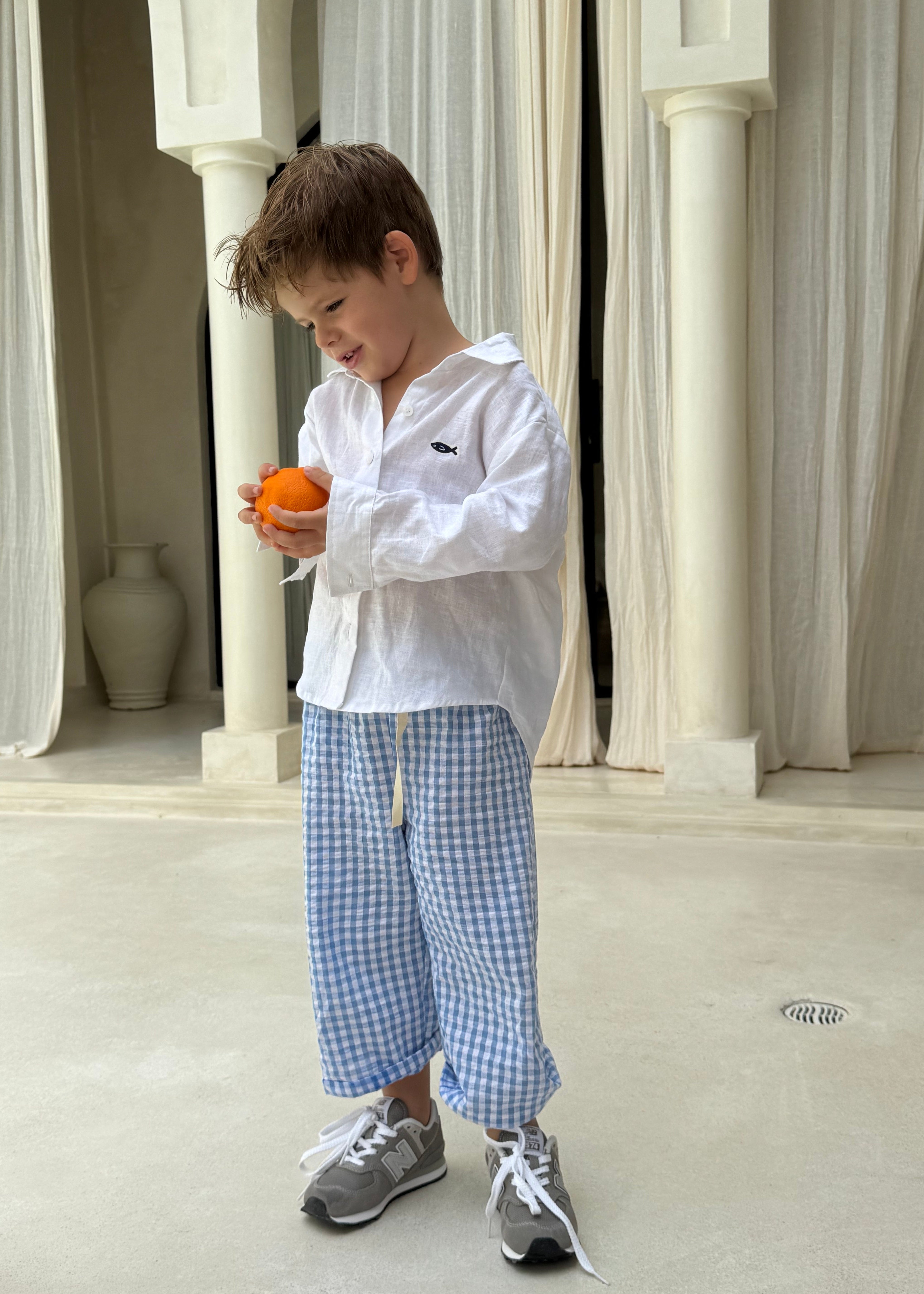 The Paintai Pant in Light Blue Gingham is a timeless staple made for sun-soaked days and special little moments.